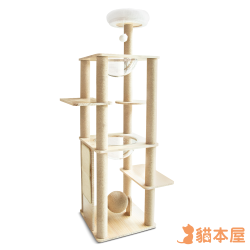 貓本屋 雙太空艙方形實(shí)木貓?zhí)_(tái)附劍麻抓板/球(161cm)(臺(tái)灣製造)
