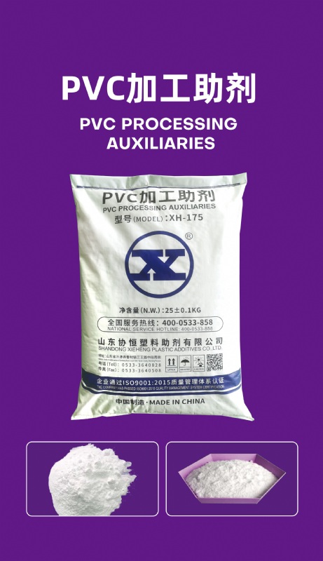 PVC processing auxiliaries are multi-layer structured ultra-high molecular weight polymers,and is the polymerization of acrylic monomer of multi-staqe emulsion. lt improves the processing performance with astable effect.The use of zeolite-modified processing auxiliaries not only improves the fluidity of the melt, but also improves the hot strength and ductility of the melt,promotes the internal and surface quality,shortens the plasticizing time and increases the productivity.