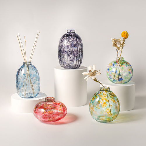 系列花器以臺灣庶民生活中的器皿印象為設(shè)計原型,每一款擴(kuò)香花器都保留了臺灣人記憶中器皿的厚實本質(zhì),並透過純手工吹塑玻璃工藝的詮釋,融入當(dāng)代生活。