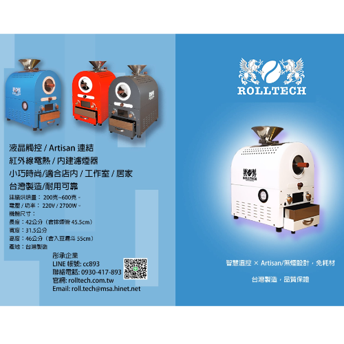 建議烘焙量: 200克~600克,滿足小型咖啡店與精品咖啡愛好者的需求。