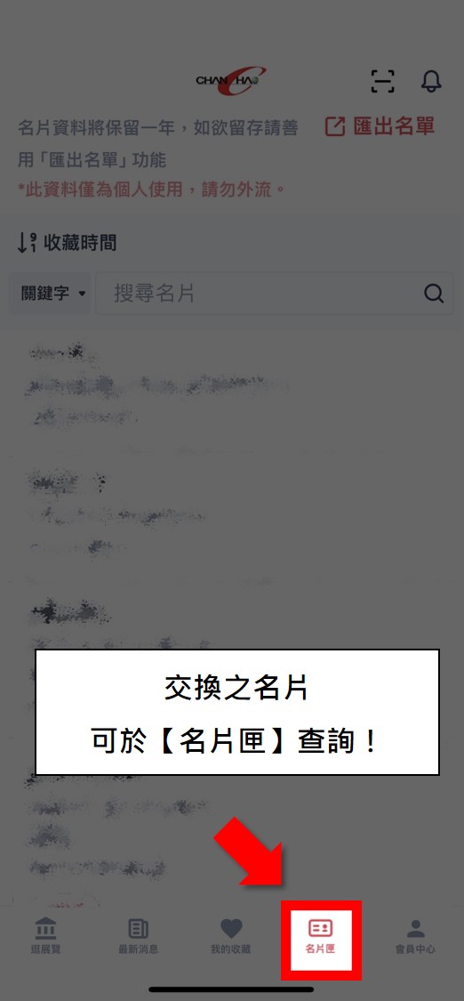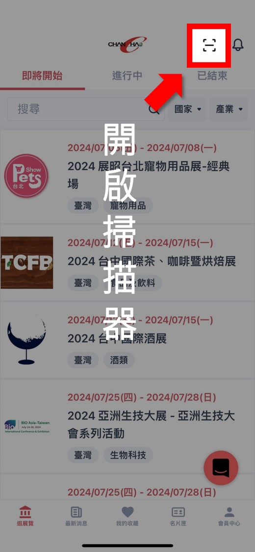 ??操作步驟:進(jìn)入【展昭展覽APP】>點(diǎn)擊右上方【掃描器】>請(qǐng)對(duì)方出示會(huì)員QRcode或電子名片,掃描後可進(jìn)行標(biāo)籤、筆記、語(yǔ)音及拍照紀(jì)錄等。