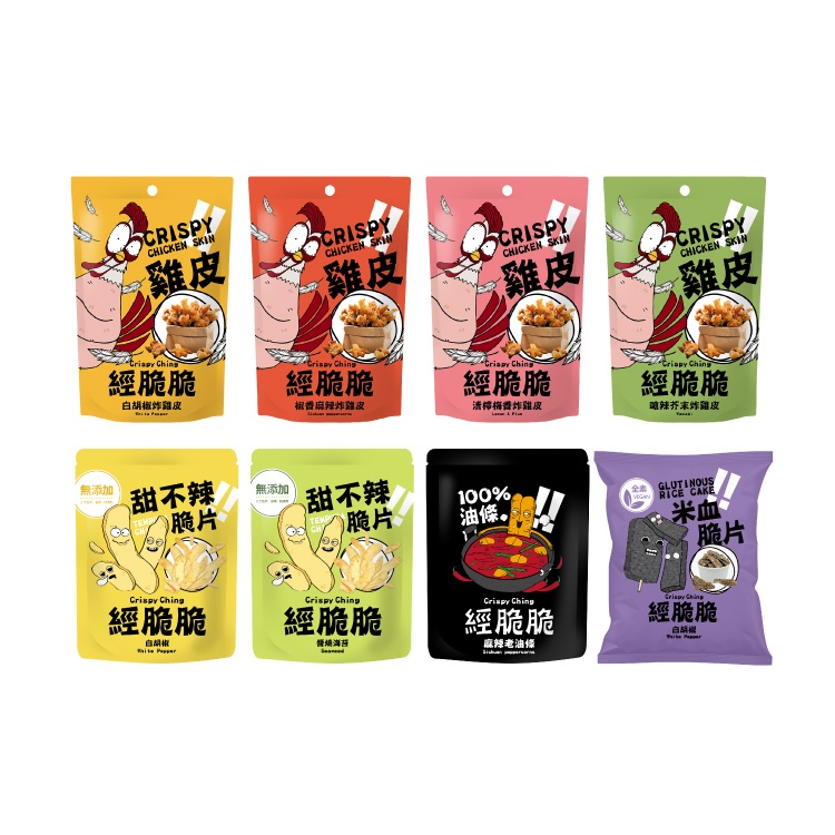 經(jīng)典臺灣味大集合! 夜市小吃炸雞皮、甜不辣、炸米血也能變零食! 知名電視節(jié)目「小明星大跟班」、「11點熱吵店」推薦!一口就上癮! 經(jīng)脆脆暢銷8包組,美食展特惠59折,再送潮流大大手提袋!