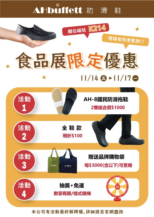【AHbuffett防滑鞋】食品展限定優(yōu)惠