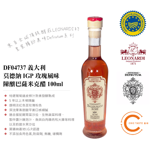 首頁 / 參觀資訊 / 2025 參展商產(chǎn)品 / 曼時(shí) Leonardi Defrutum 義大利莫德納 IGP 玫瑰風(fēng)味陳釀巴薩米克調(diào)味醋 100ml /250ml