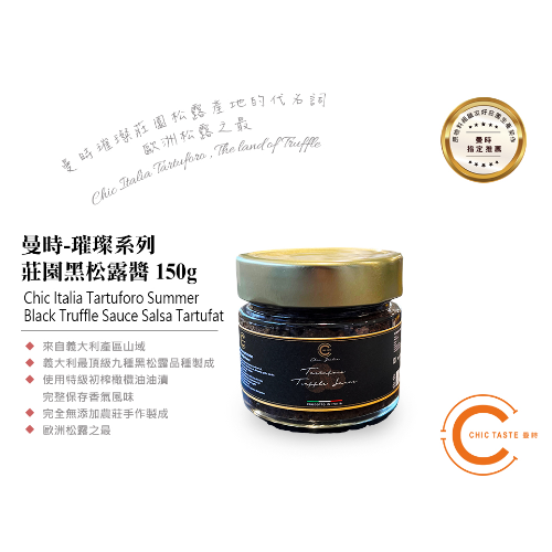 首頁 / 參觀資訊 / 2025 參展商產(chǎn)品 / 曼時 CHIC TASTE 歐洲松露之最 璀璨系列 莊園黑松露醬 Chic Italia Tartuforo 150g
