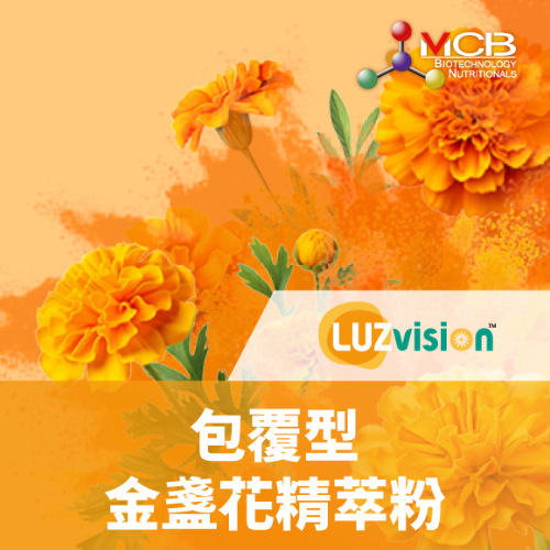 LUZvision? 為萃取自金盞花的游離型葉黃素粉末原料,並以20%葉黃素和4%玉米黃質(zhì)的5:1黃金比例配置,粉體採用MCT中鏈脂肪酸微脂分散(Liposome)包埋,具備優(yōu)異的生物利用度和水溶性。為開發(fā)視力保健與營養(yǎng)品的最佳機(jī)能原料。