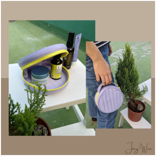 淡紫色配亮黃色拉鍊,色彩搭配亮眼