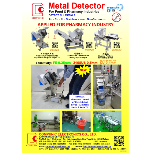 測保健&製藥食品專用機配一體化自動排除設備,來剔除原料或加工過程可能滲入的金屬異物。具有優(yōu)異之實測靈敏度表現、穩(wěn)定耐用、操作便利,且金檢平臺進出端皆採懸空設計,很方便與現有生產線設設備銜接,更可以直接穿牆以配合高規(guī)格之生產線隔間、佈置規(guī)劃。適用於小包裝及散裝產品。