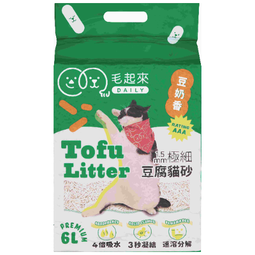 毛起來1.5mm極細(xì)豆腐貓砂成團(tuán)快速清潔容易,超強(qiáng)4倍吸水力能瞬間吸收大量水流,3秒迅速成團(tuán)挖起不崩散,能緊密包覆並吸附臭味,可沖馬桶不堵塞。