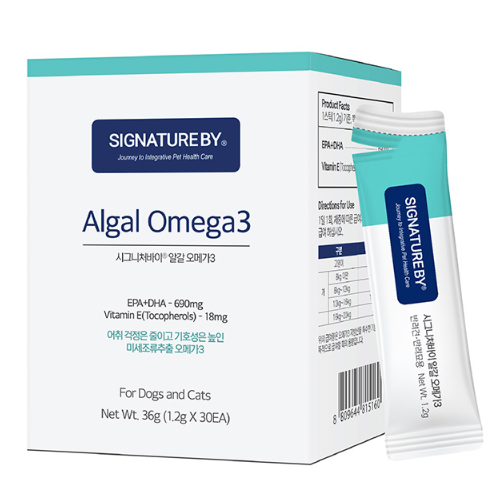 韓國Signatureby Omega3藻油,微藻萃取的Omega3,每條EPA+DHA含量690mg,高劑量DHA,無魚油的腥味,好入口,適合貓狗做日常皮膚毛髮保養(yǎng)。植物性來源,低重金屬污染風(fēng)險,單條包裝,減少Omega脂肪酸酸化風(fēng)險,食用更安心。