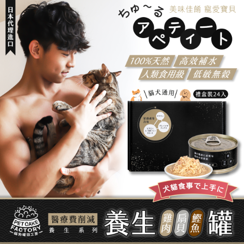首頁 / 參觀資訊 / 參展商產(chǎn)品 / 雞肉.鰹魚.扇貝機能貓罐頭 (禮盒裝24罐) 醫(yī)療費削減 養(yǎng)生系列