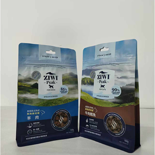 Eight-sided sealed aluminum foil easy-tear zipper bag, with an eight-sided sealed edge structure, has a flat and stable bottom, providing a better three-dimensional display effect. Aluminum foil has the characteristics of light-blocking and high barrier, effectively isolating oxygen and moisture, and extending the shelf life of food. It supports customization in various specifications and can be in lengths of less than 1 meter, meeting the needs of large packaging. It is suitable for cat food, dog food, bird food and various small pet packaging.